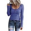 Women's Button Vest Color V-neck Long Sleeve Top Blue M
