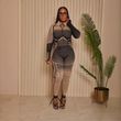 Women's Casual Fashion Striped Pattern Long Sleeve Trousers Suit Brown 2XL