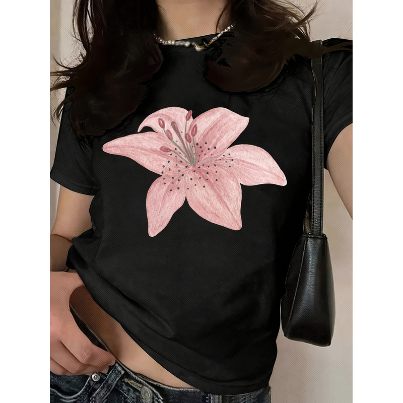 Women's Casual Floral Print Women's Crewneck Casual Short Sleeve T-Shirt Summer Harajuku Streetwear Tops Tees Women Clothes