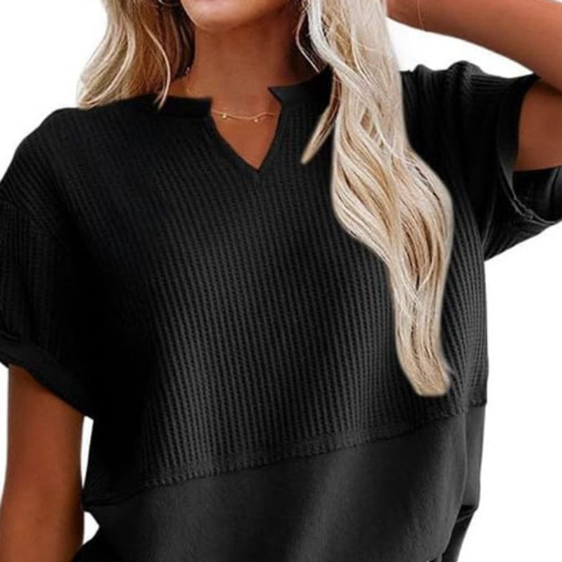 Women's Casual Knitted Short-sleeved Shirt Black S
