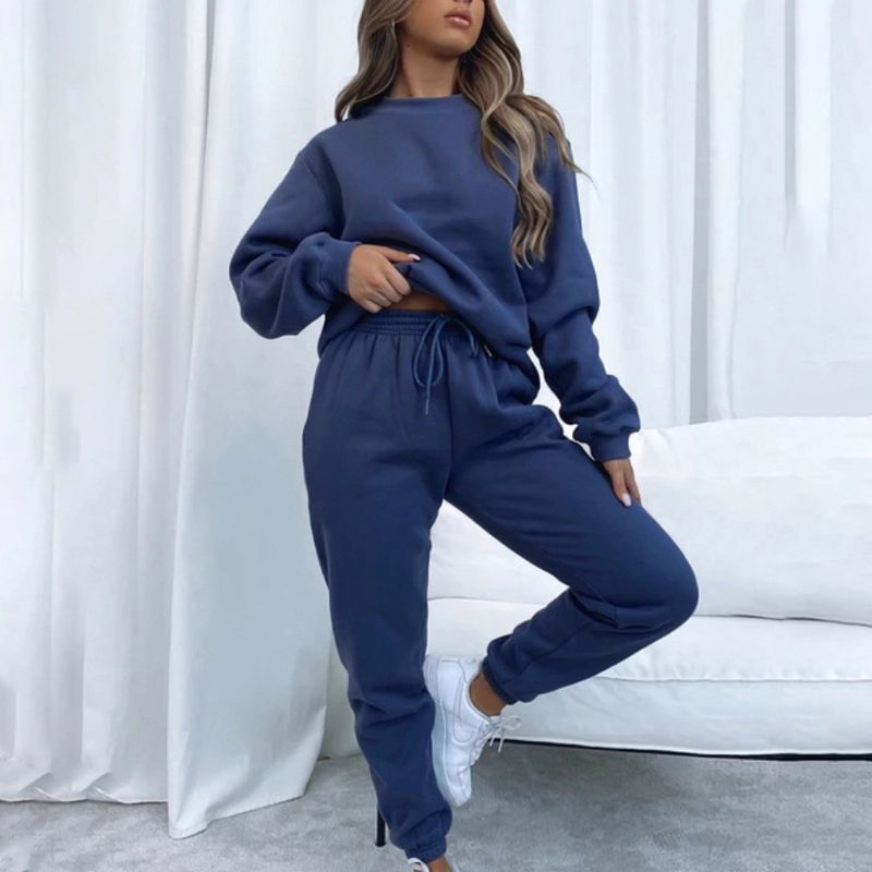 Women's Casual Long Sleeve Sweatshirt Suit Apricot L