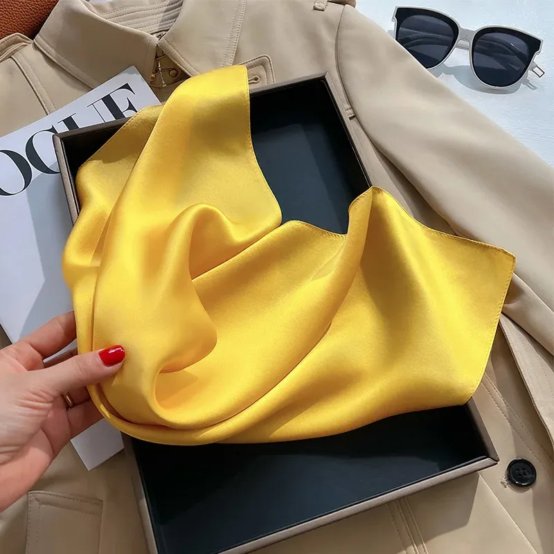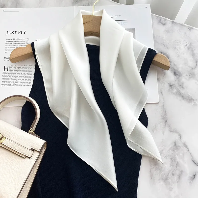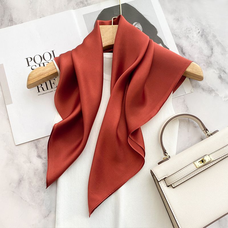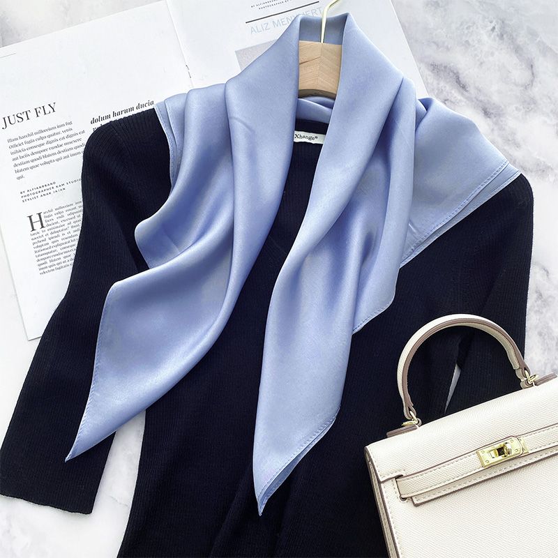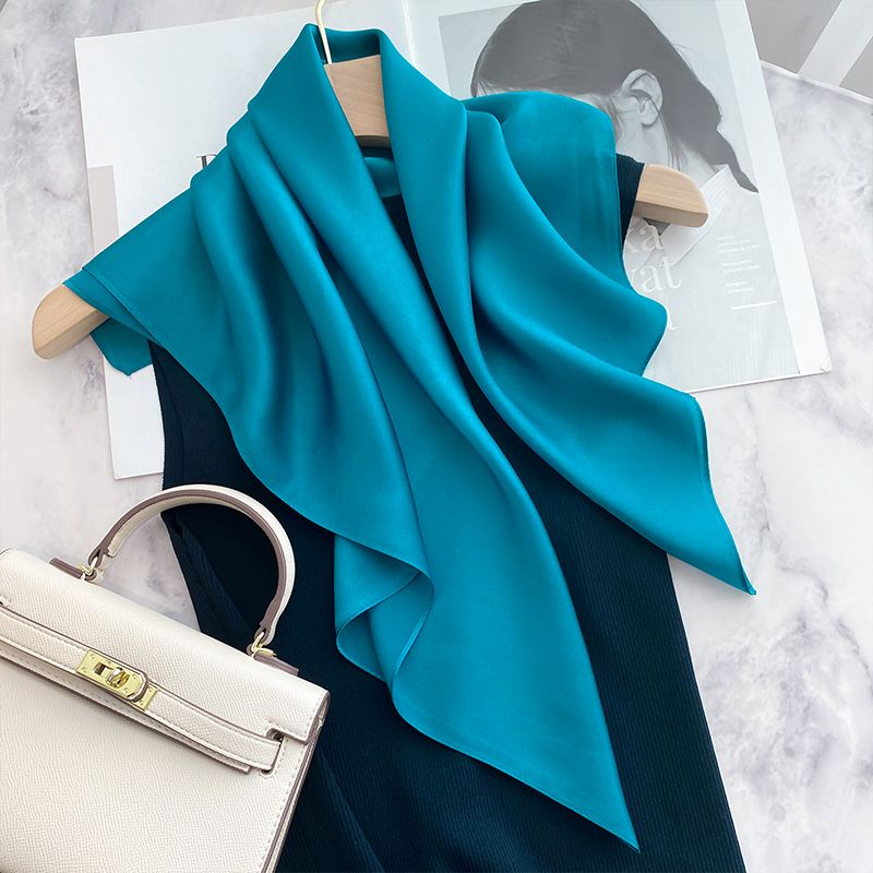 Women's Casual New 100% Natural Mulberry Silk Satin High-end Feeling Solid Color Skin Friendly Comfortable Scarf