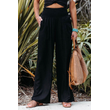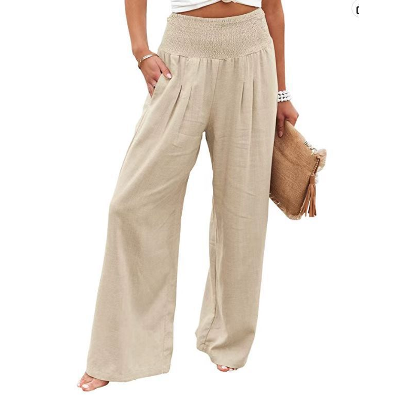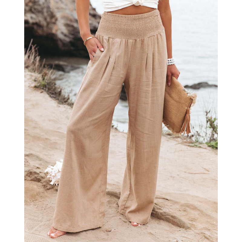 Women's casual pants with drawstring, mid waist, beach wide leg, spring and summer, European and American pants