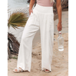 Women's casual pants with drawstring, mid waist, beach wide leg, spring and summer, European and American pants