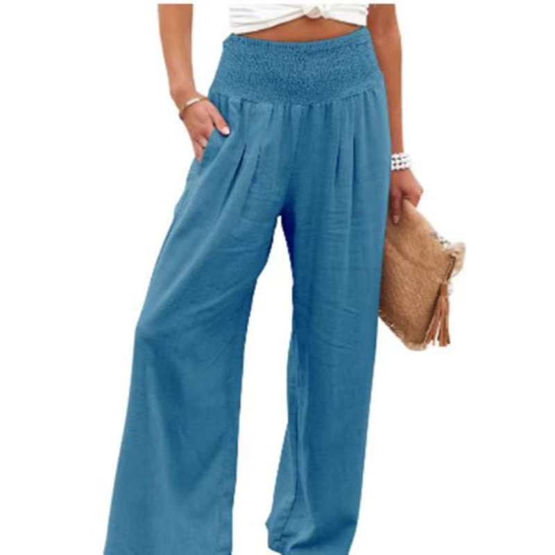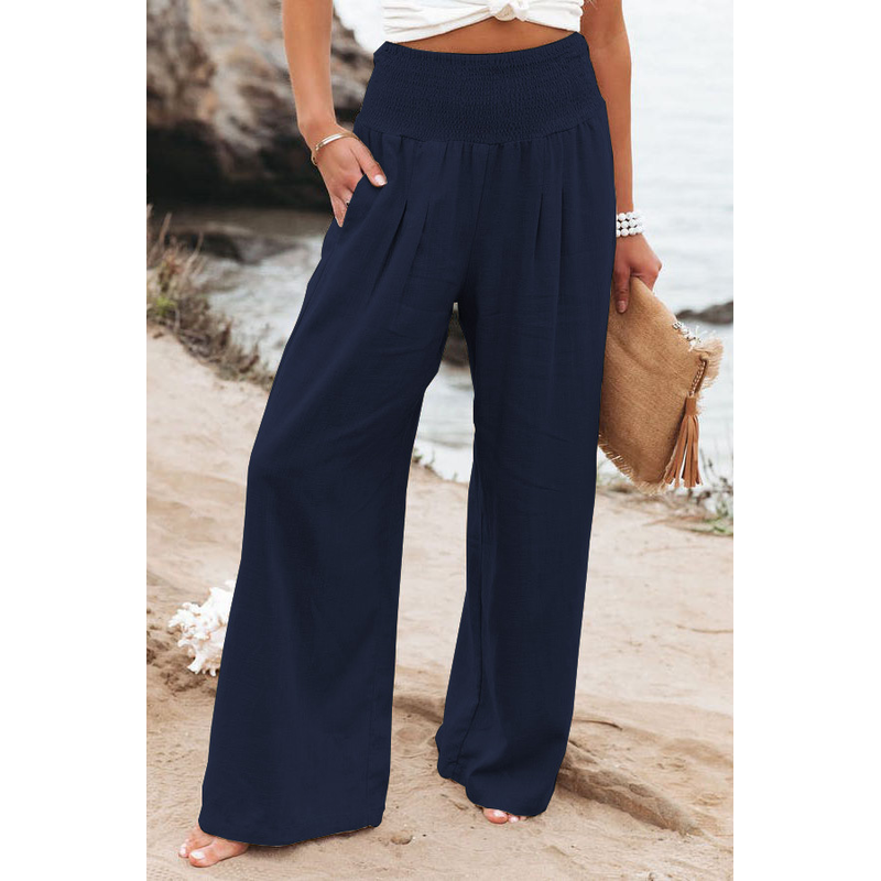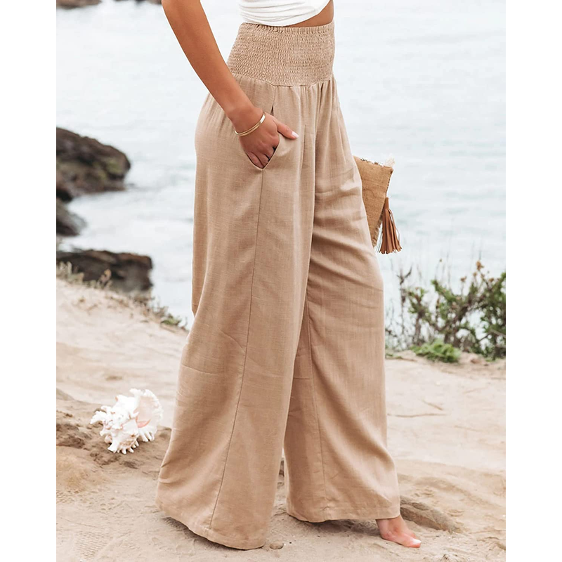 Women's casual pants with drawstring, mid waist, beach wide leg, spring and summer, European and American pants