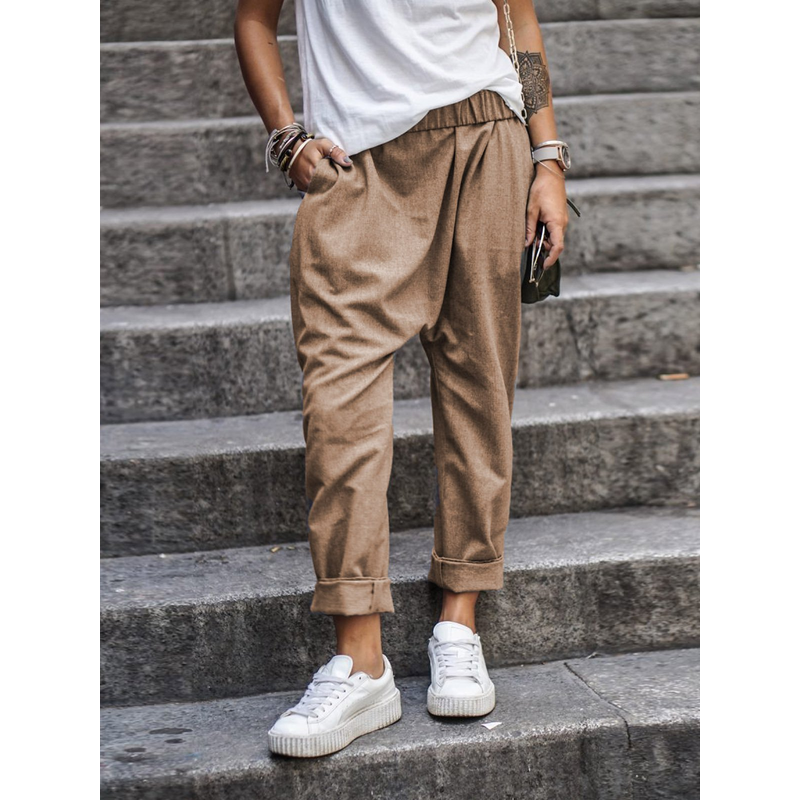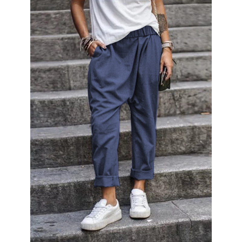Women's Casual Pants With Pockets Elastic High Waist Harem Trousers Fashion Streetwear Clothing Dark Blue S