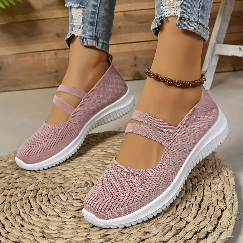 Women's casual shoes, solid color breathable mesh shoes, flat walking women's shoes, fashionable thin straps, free shipping