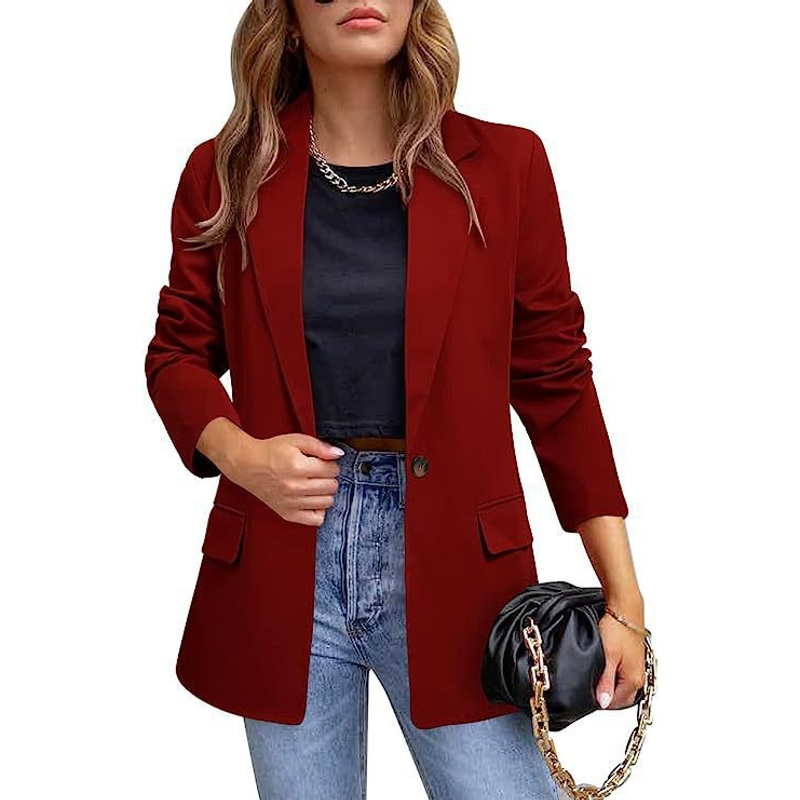 Women's Casual Suit Jacket Long Sleeve Wine Red M