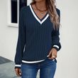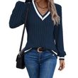 Women's Casual V-neck Ribbed Sweatshirt Navy Blue Navy Blue L