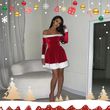 Women's Christmas Costume Santa Dress Plush Trim Boat-Neck Off-Shoulder Sleeve Dress New Year Party Cosplay Costume Red L