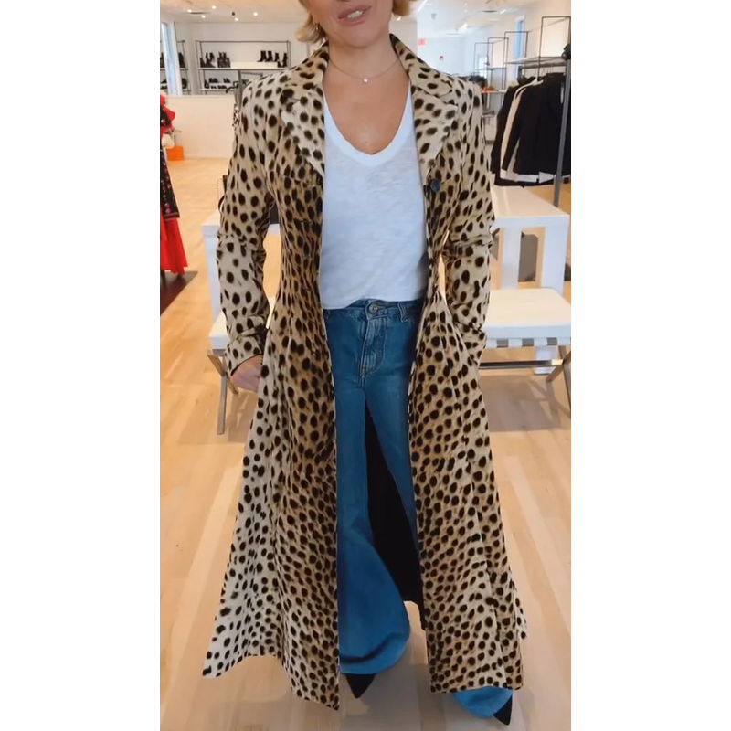 Women's Coat Lapel Leopard Print Casual Trench Women's Clothing Gradient Spot Leopard Print L