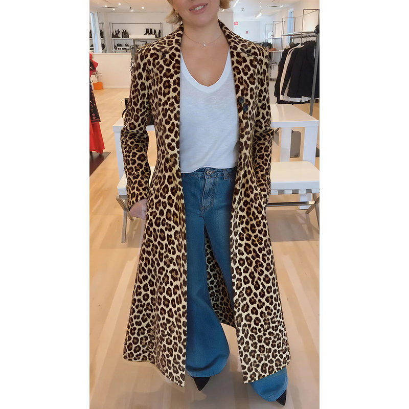 Women's Coat Lapel Leopard Print Casual Trench Women's Clothing Leopard Print XL