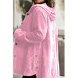 Women's Corduroy Hooded Jacket Fashion Warm Pockets Button Mid-length Top Casual Fall Winter Outwear Clothing Pink S