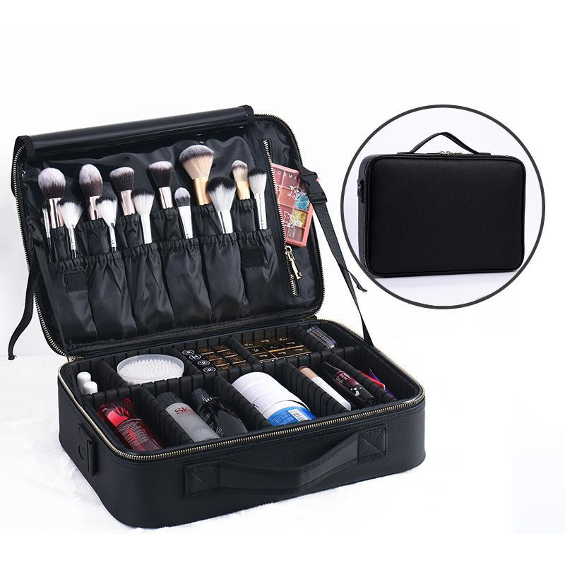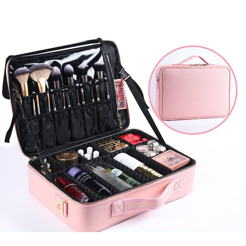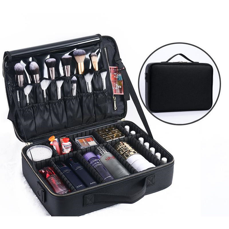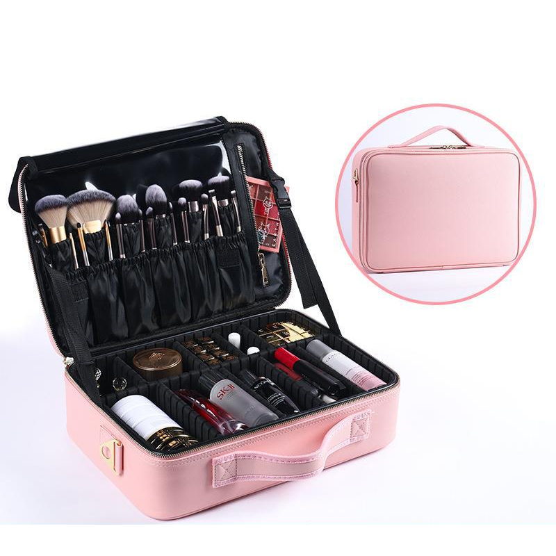 Women's Cosmetic Bag Cosmetic Bag Beauty Storage Box Leathermedium2 layers white