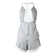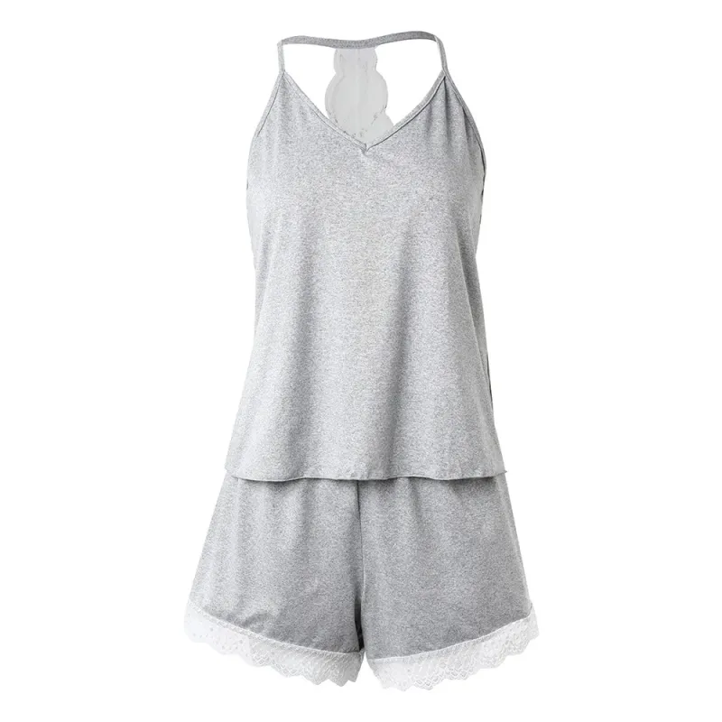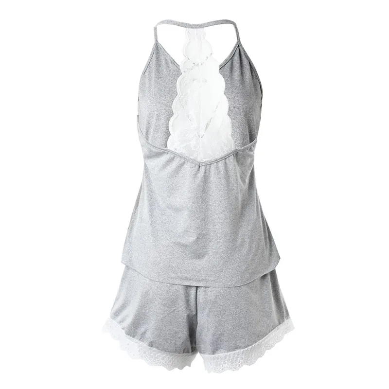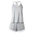 Women's Crochet Lace 2 Pieces Pajamas Sleeveless V-Neck Set Casual Sleepwear Suit Sexy Solid Home Clothes Summer Wear