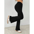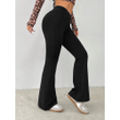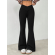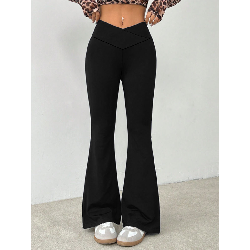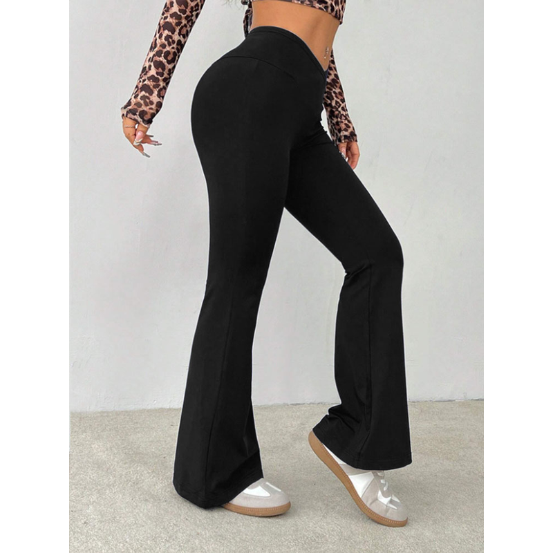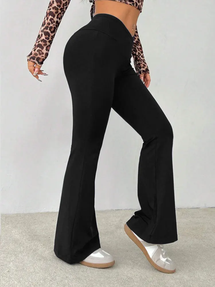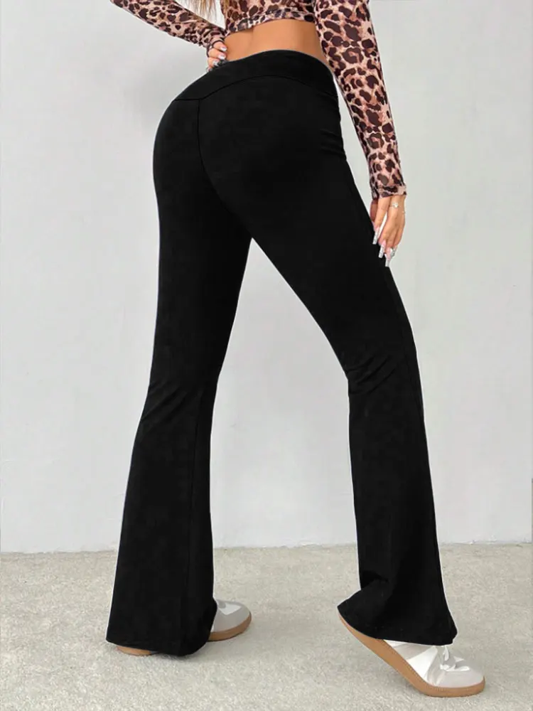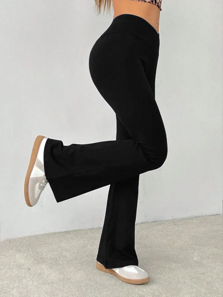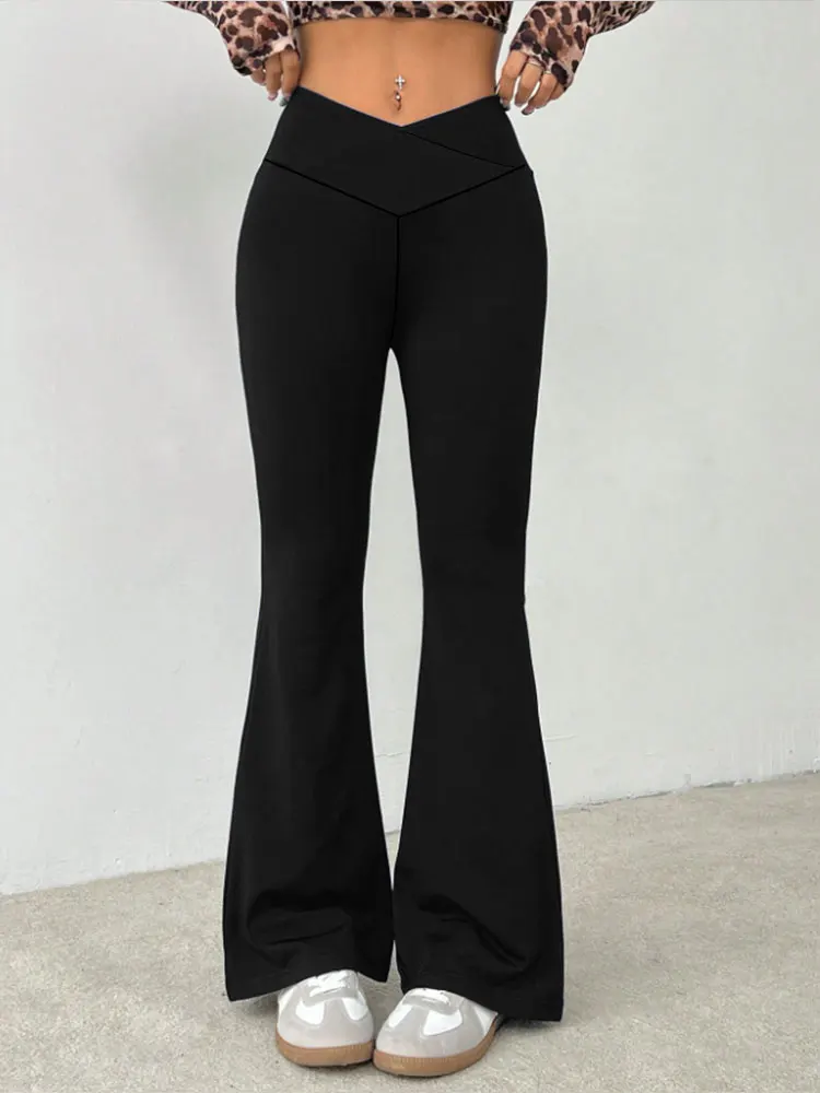 Women's Crossover Waist Flare Yoga Pants, Minimalist High-Waisted Knit Leggings with High Elasticity,Plus Size Pants & Capris