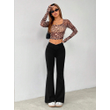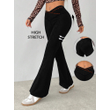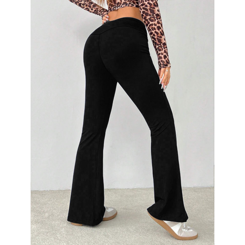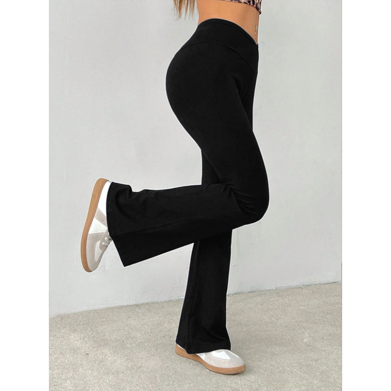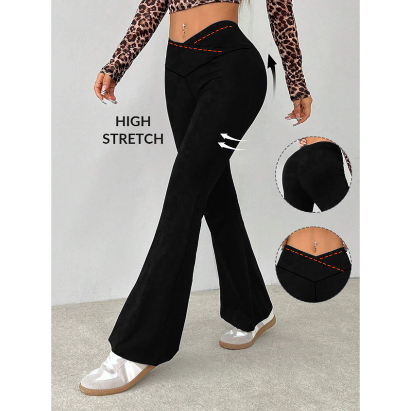 Women's Crossover Waist Flare Yoga Pants, Minimalist High-Waisted Knit Leggings with High Elasticity,Plus Size Pants & Capris