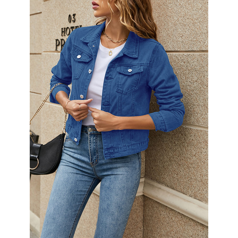 Women's Denim Jackets Fashion Female Casual Long Sleeve Lapel Solid Button Down Chest Pocket Slim Jean Jacket Fall Winter Coat