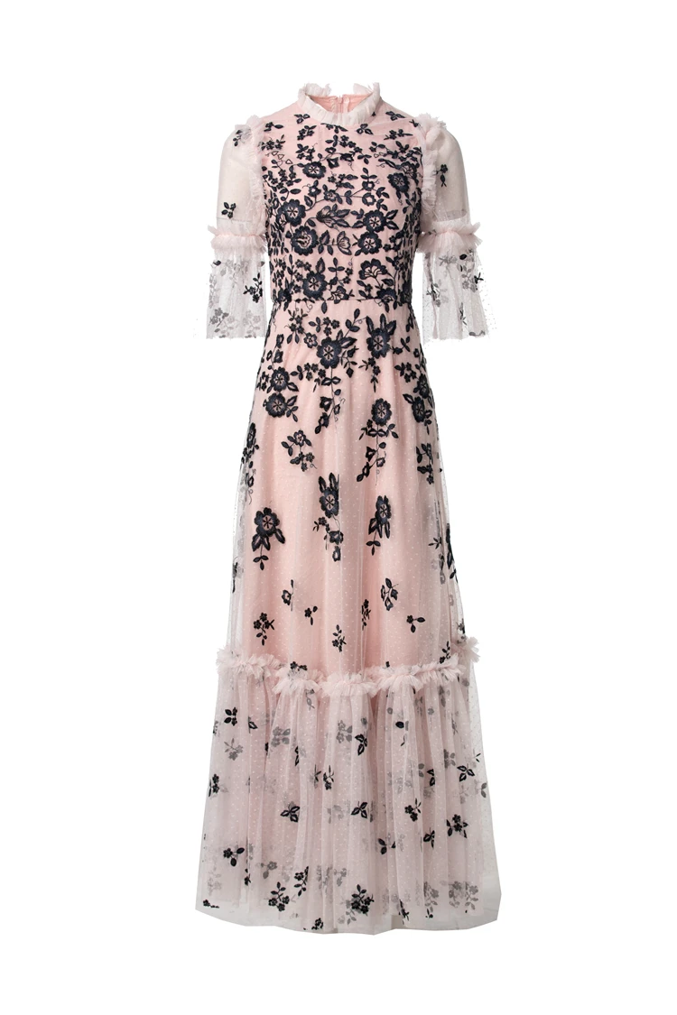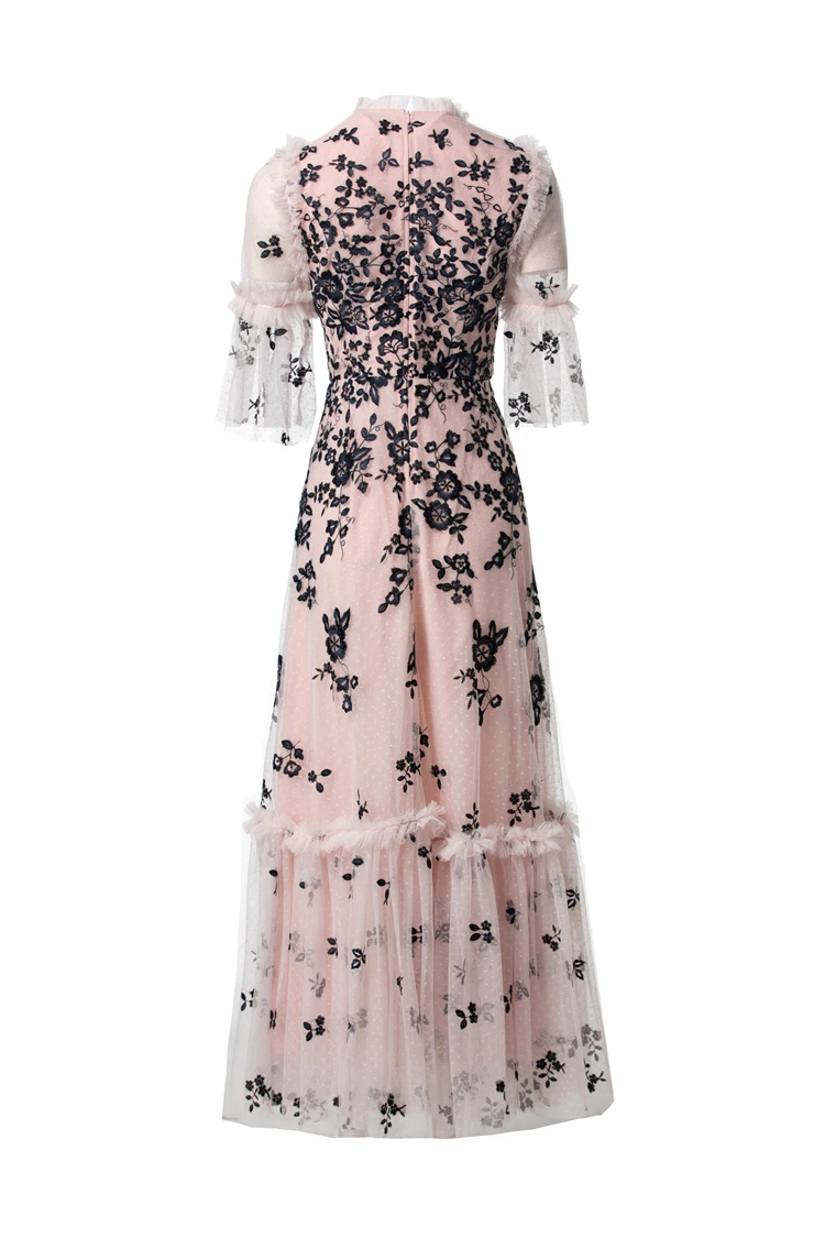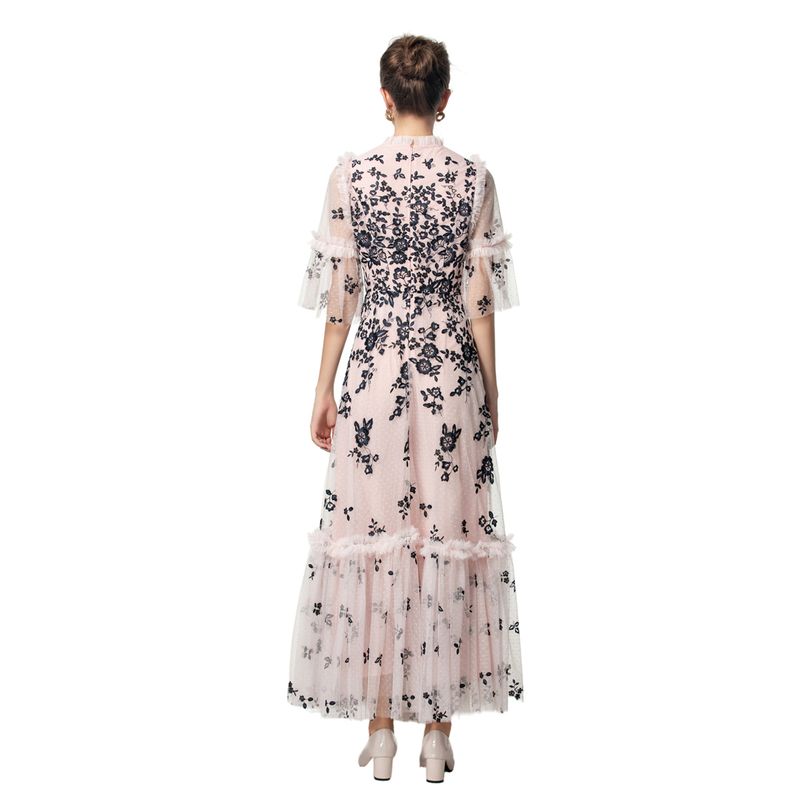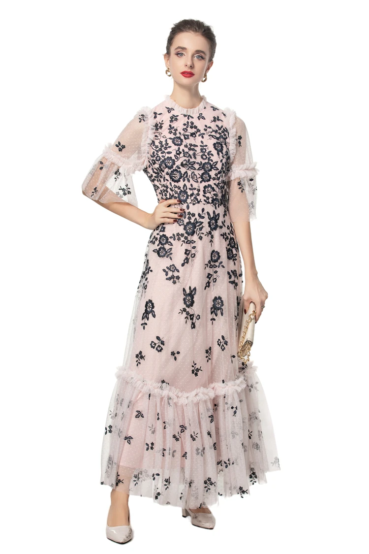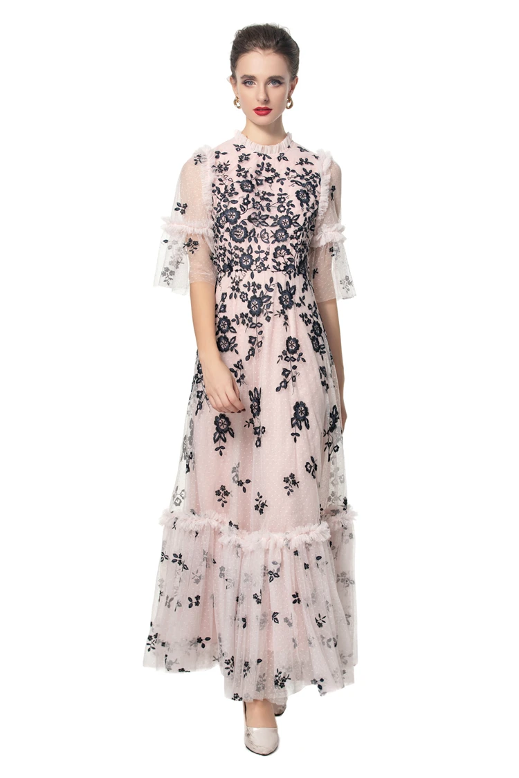 Women's Dress O Neck Half Sleeves Embroidery Layered Floral Elegant Party Prom Vestidos