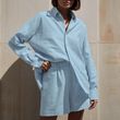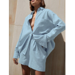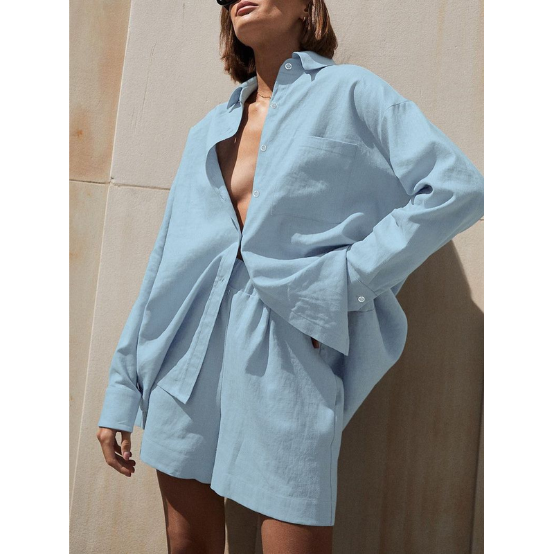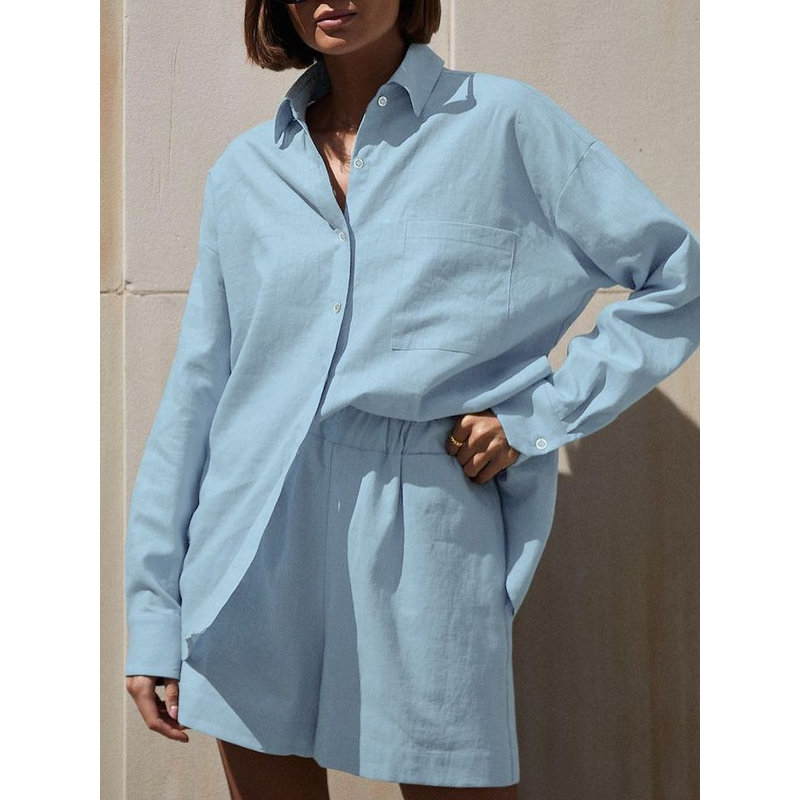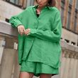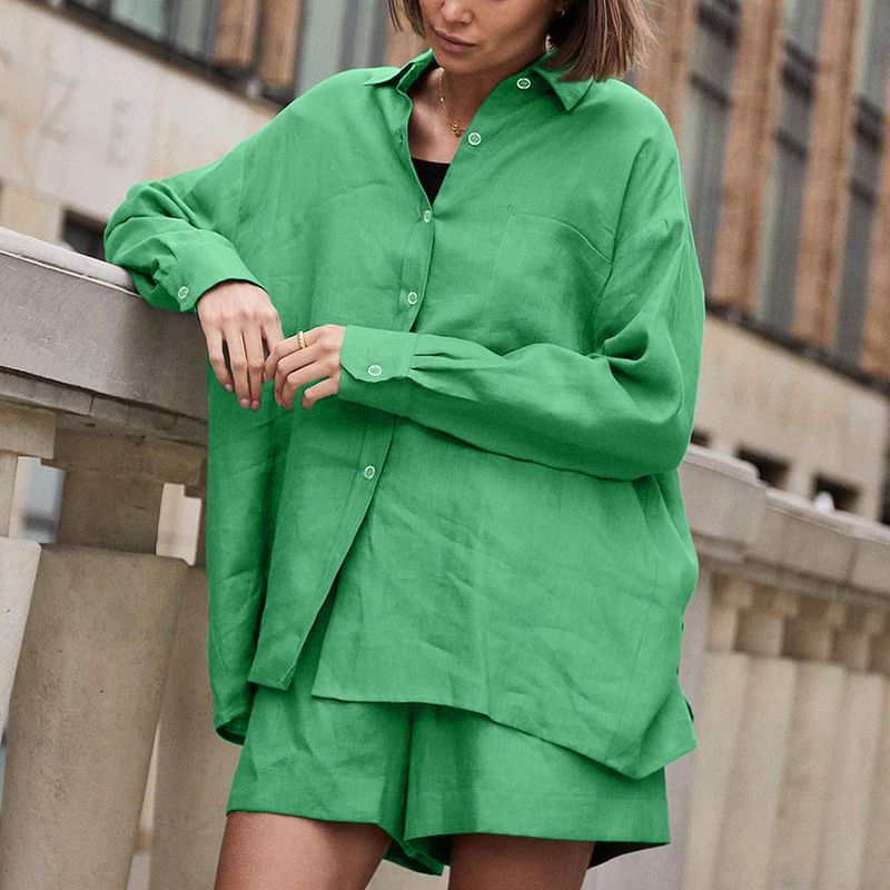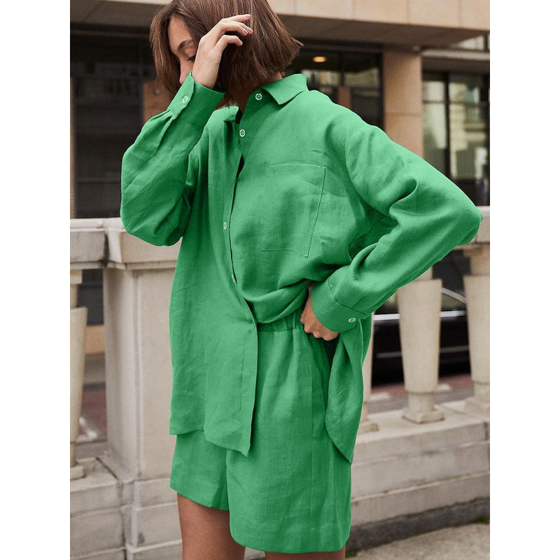 Women's Elegant Casual Long Sleeve Shirt Shorts Suit Green L