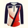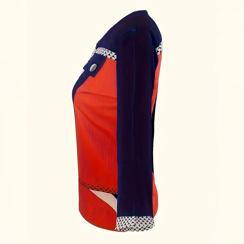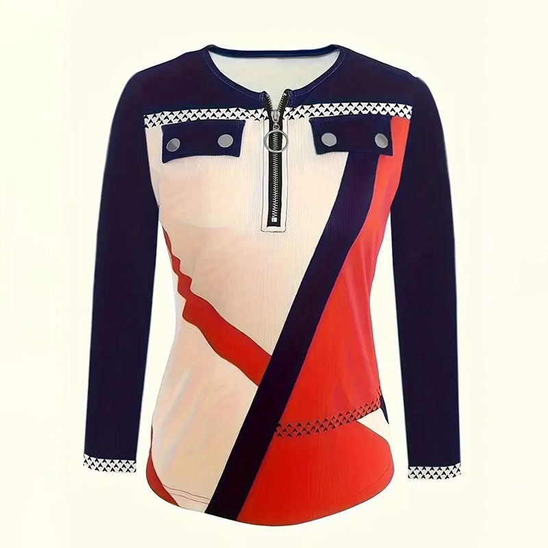 Elevate your seasonal wardrobe with this sleek color-block V-neck top, featuring a modern zip detail for contemporary flair. Designed with long sleeves and a tailored yet comfortable fit, this versatile blouse transitions effortlessly from casual daytime wear to semi-formal occasions.