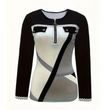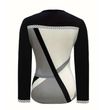 Women's Elegant Color-Block V-Neck Long Sleeve Top with Zip Detail - Spring/Fall Casual & Semi-Formal Blouse