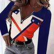 Women's Elegant Color-Block V-Neck Long Sleeve Top With Zip Detail - Spring&Fall Casual & Semi-Formal Blouse