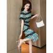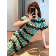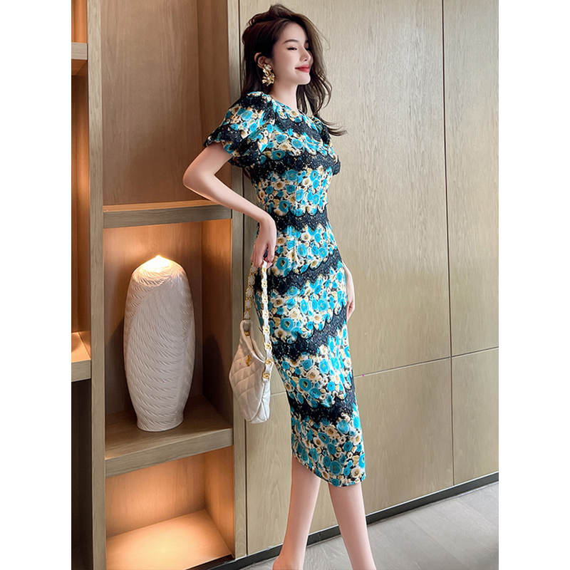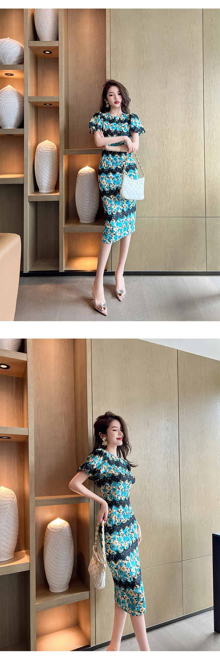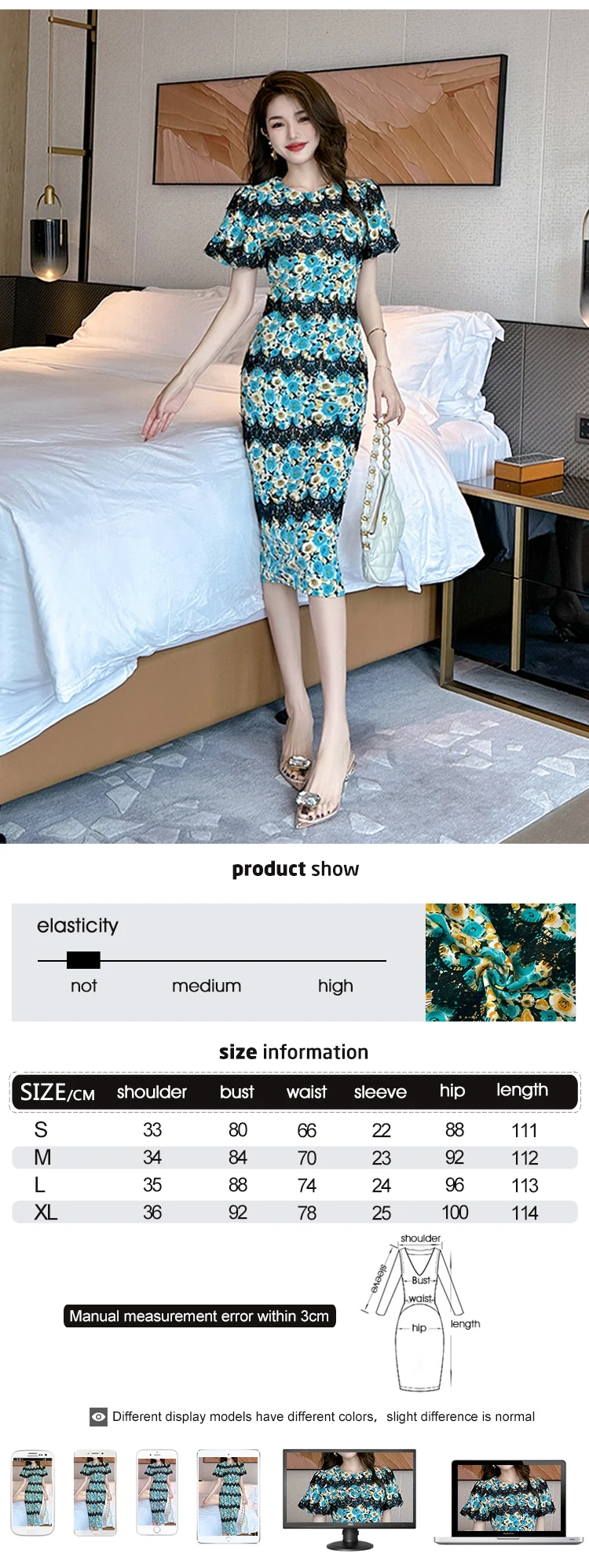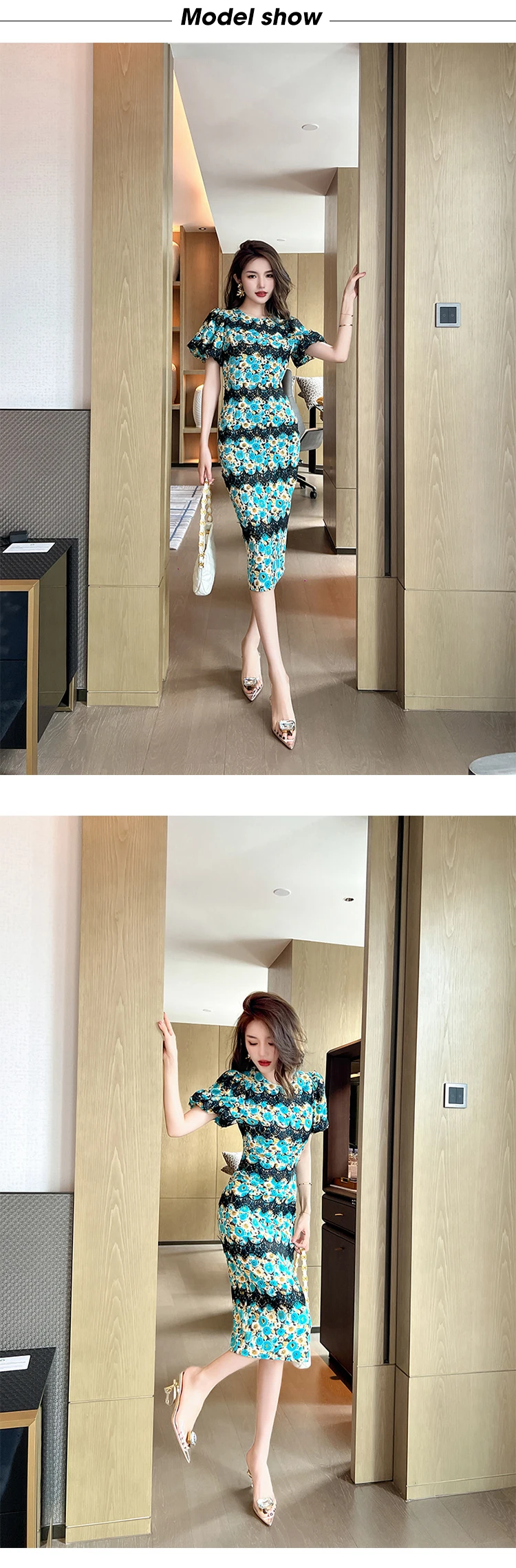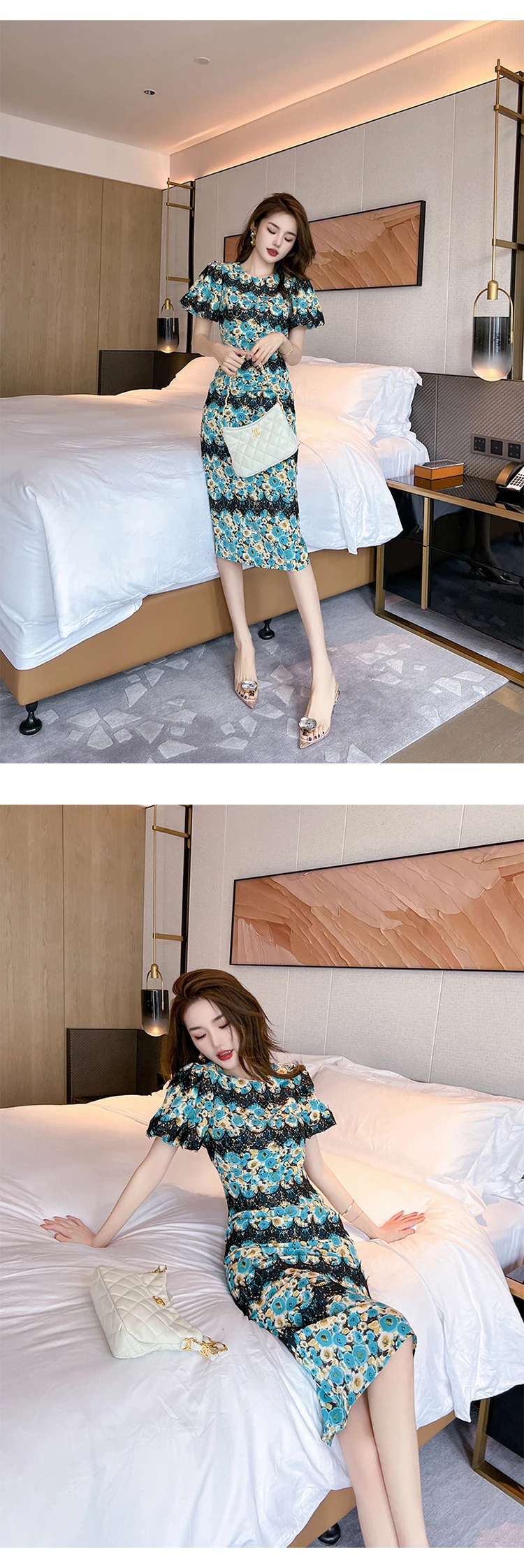 Women's Elegant Midi Dress Elegant Retro Lace Satin Flowers Long Robe Female Sweet Split Gown Party Office Vestidos Mujer