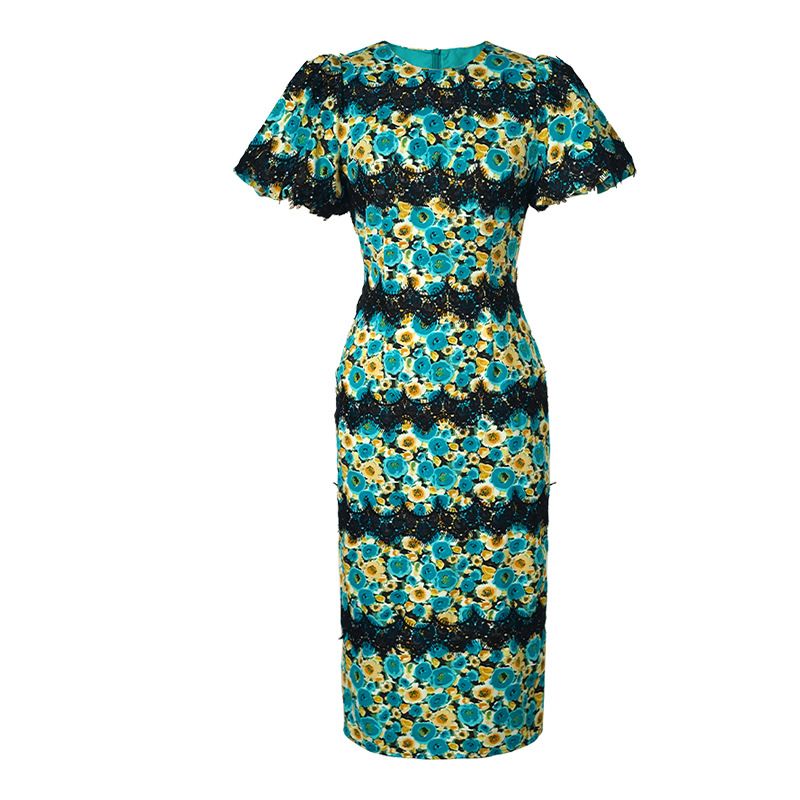 Women's Elegant Midi Dress Elegant Retro Lace Satin Flowers Long Robe Female Sweet Split Gown Party Office Vestidos Mujer