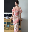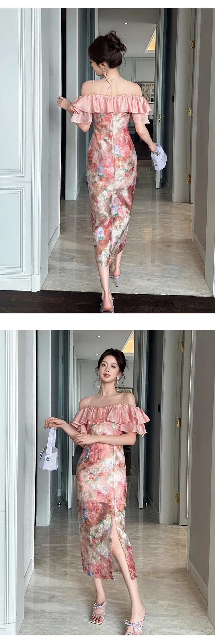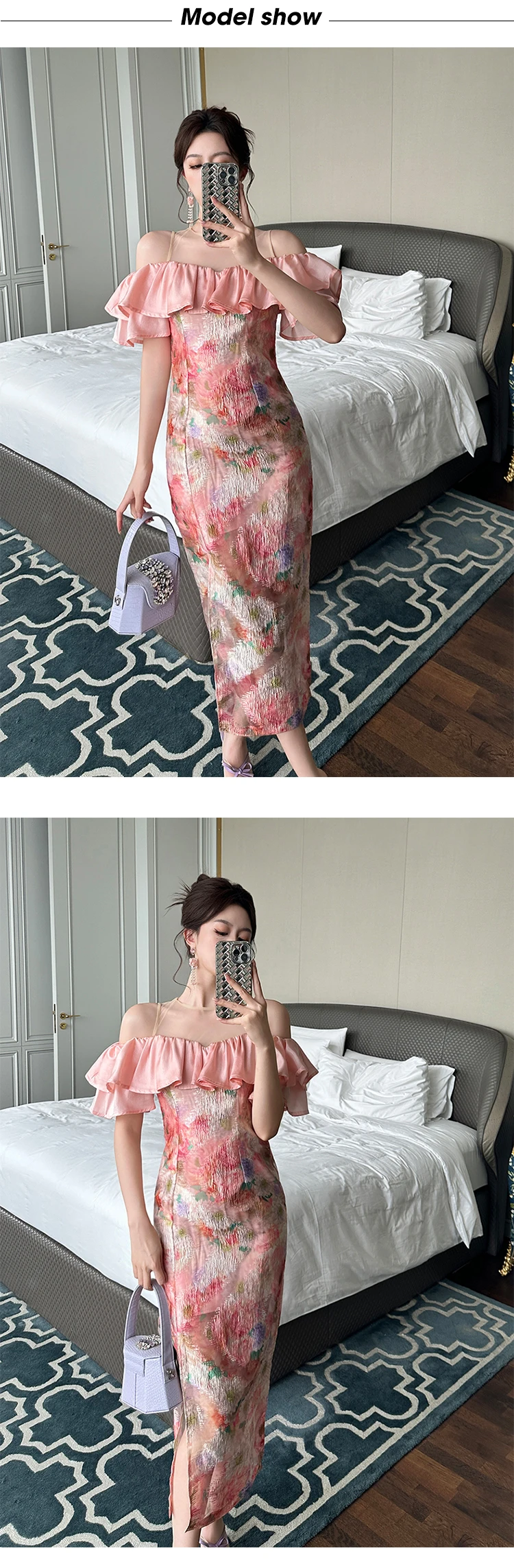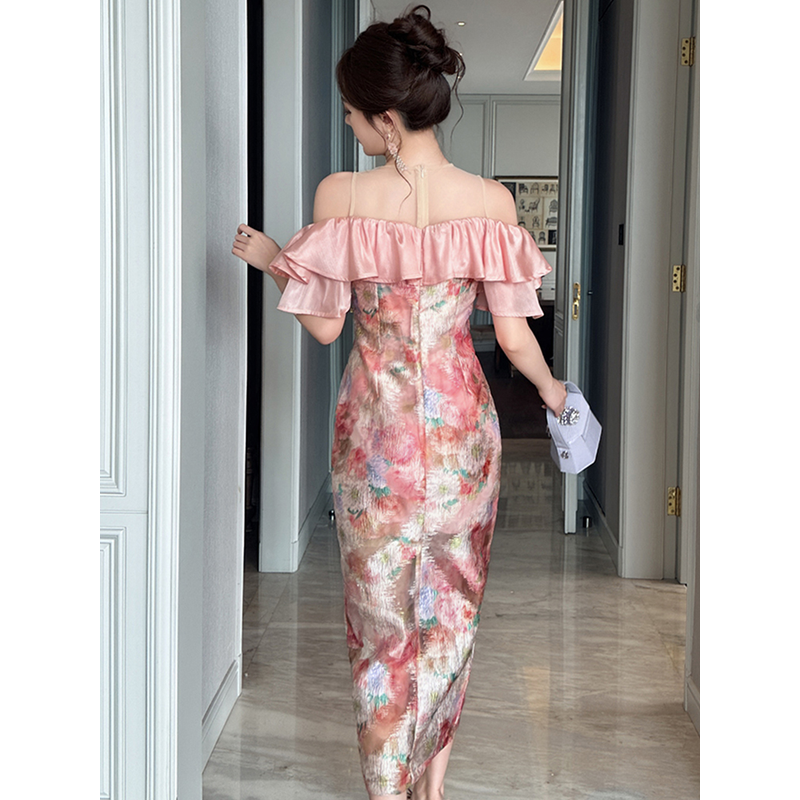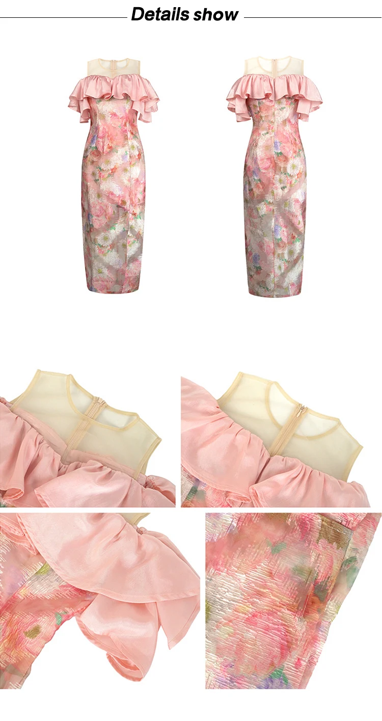 Women's Elegant Sexy Birthday Party Dress Kawaii Cute Sheer Mesh Splice Off Shoulder Ruffles Slit Robe Female Prom Date Vestidos