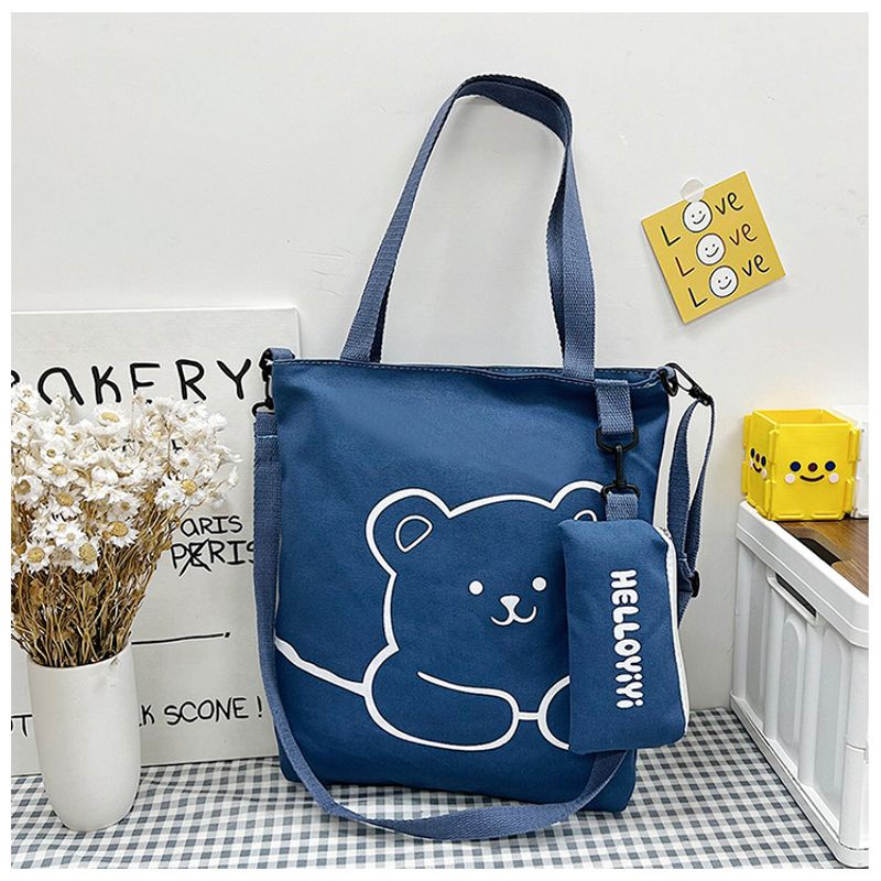 Women's Fashion Bear Printed Crossbody Bag Blue