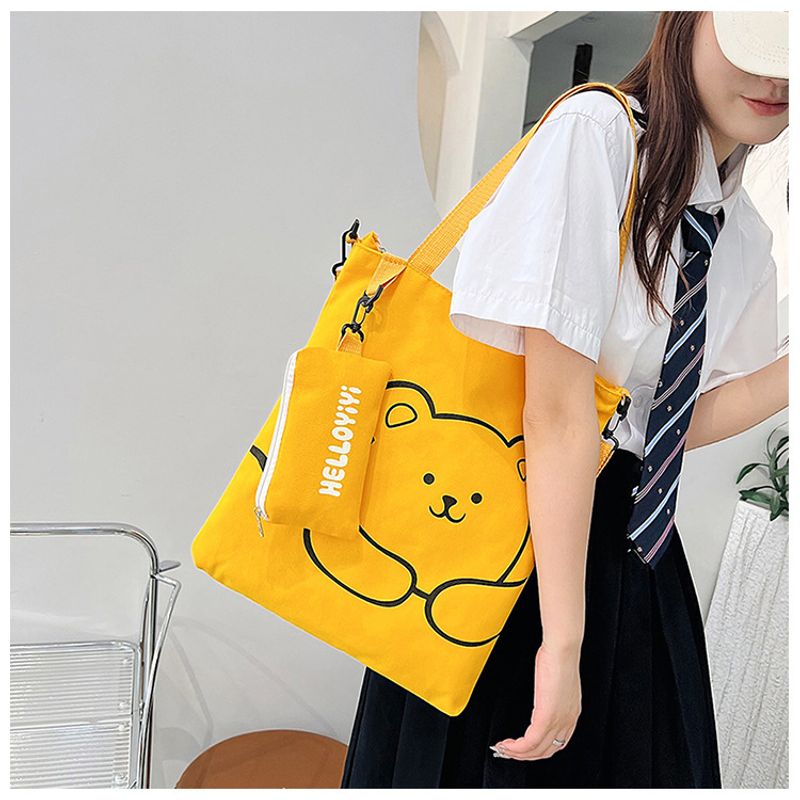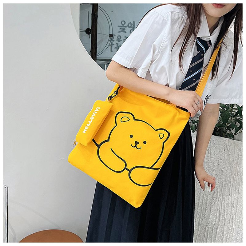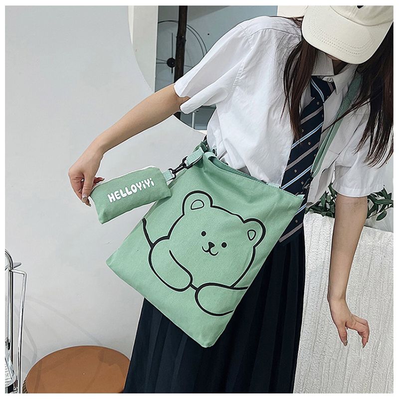 Women's Fashion Bear Printed Crossbody Bag Khaki