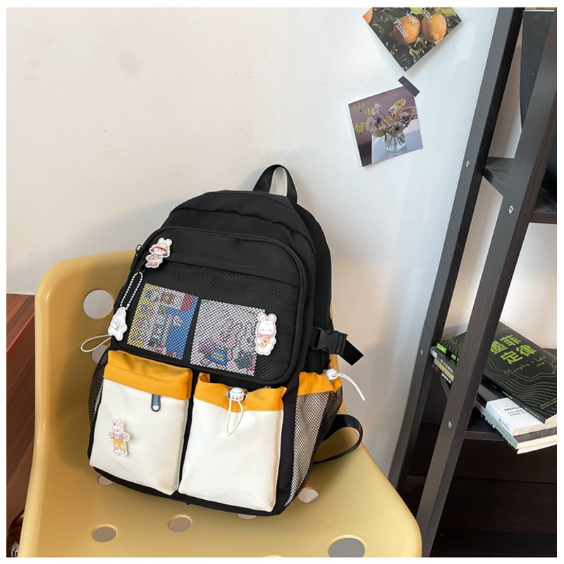 Women's Fashion Casual Contrast Color Backpack Black Only Bag
