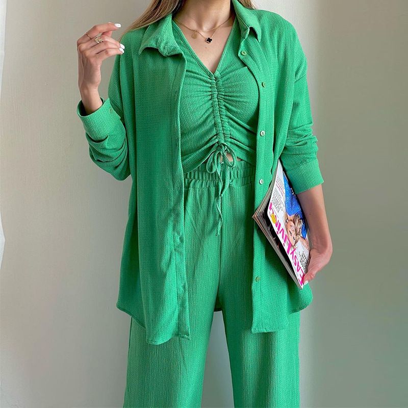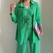 Women's Fashion Casual Long Sleeve Shirt Drawstring Short Sleeve Suit Green 2XL