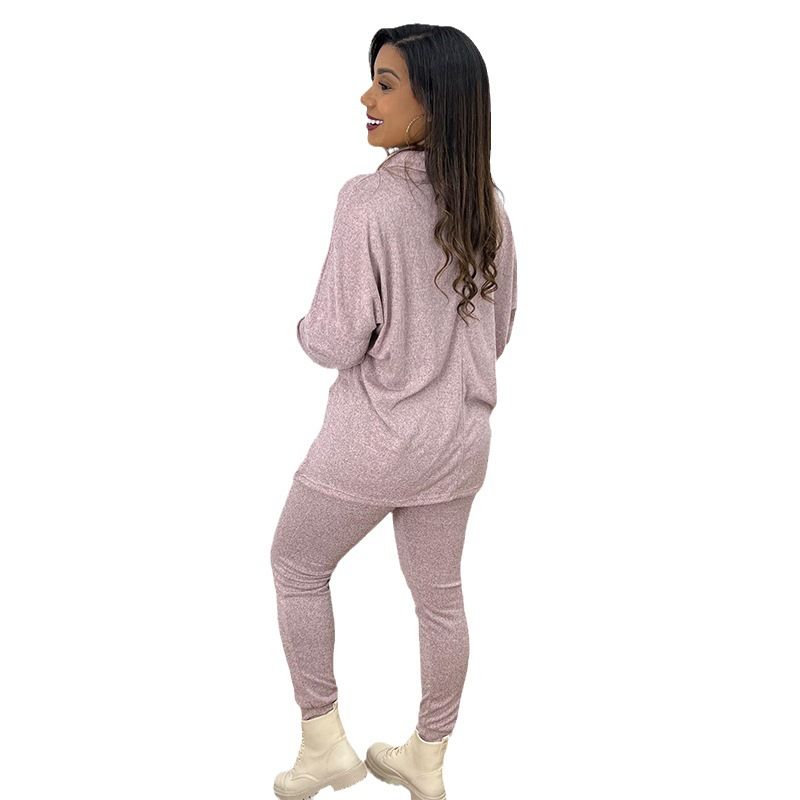 Women's Fashion Casual Loose Turtleneck Long Sleeves Top And Trousers Suit Lotus Color 2XL