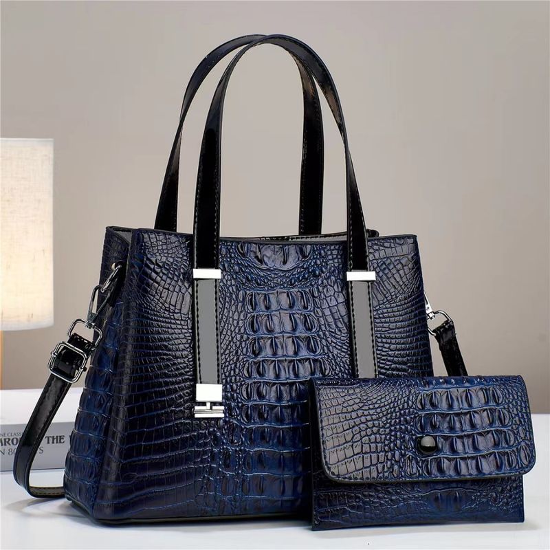 Women's Fashion Crocodile Pattern Large Capacity Combination Bags Blue