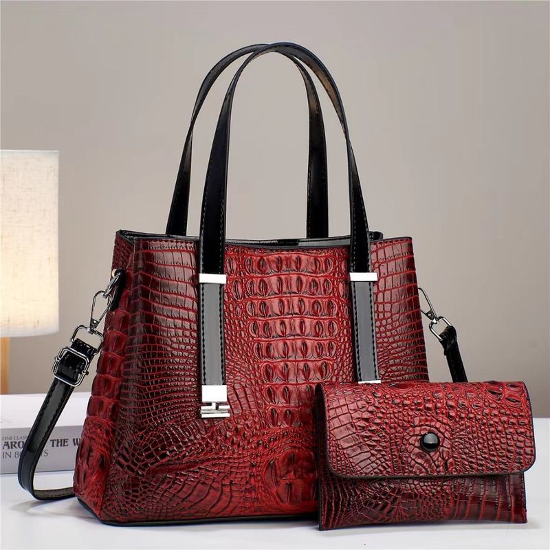 Women's Fashion Crocodile Pattern Large Capacity Combination Bags Pink