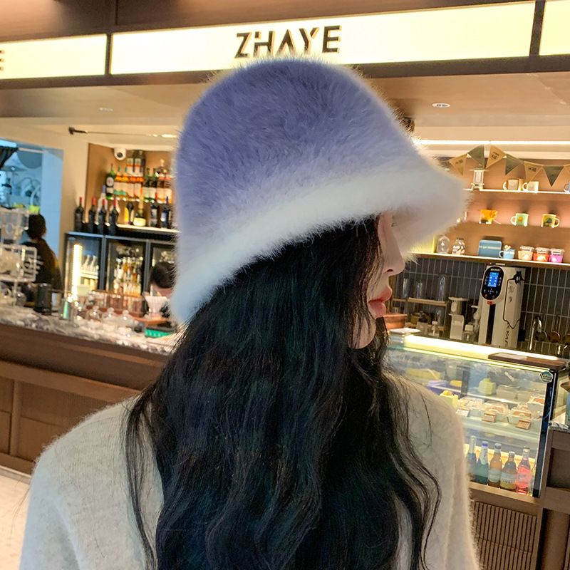 Women's Fashion Gradient Color Rabbit Fur Warm Fisherman Hat Coffee Plus Chen Average Size