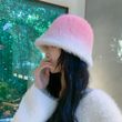 Women's Fashion Gradient Color Rabbit Fur Warm Fisherman Hat Gray Plus White Average Size