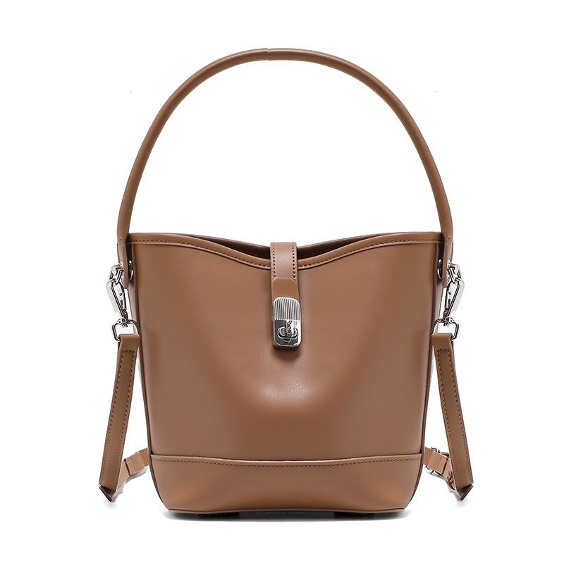 Women's Fashion High Quality Cowhide Bucket Bag Coffee