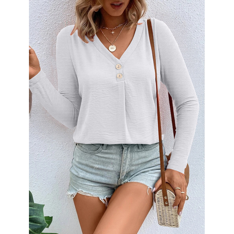 Women's Fashion Long Sleeve Button Top White S