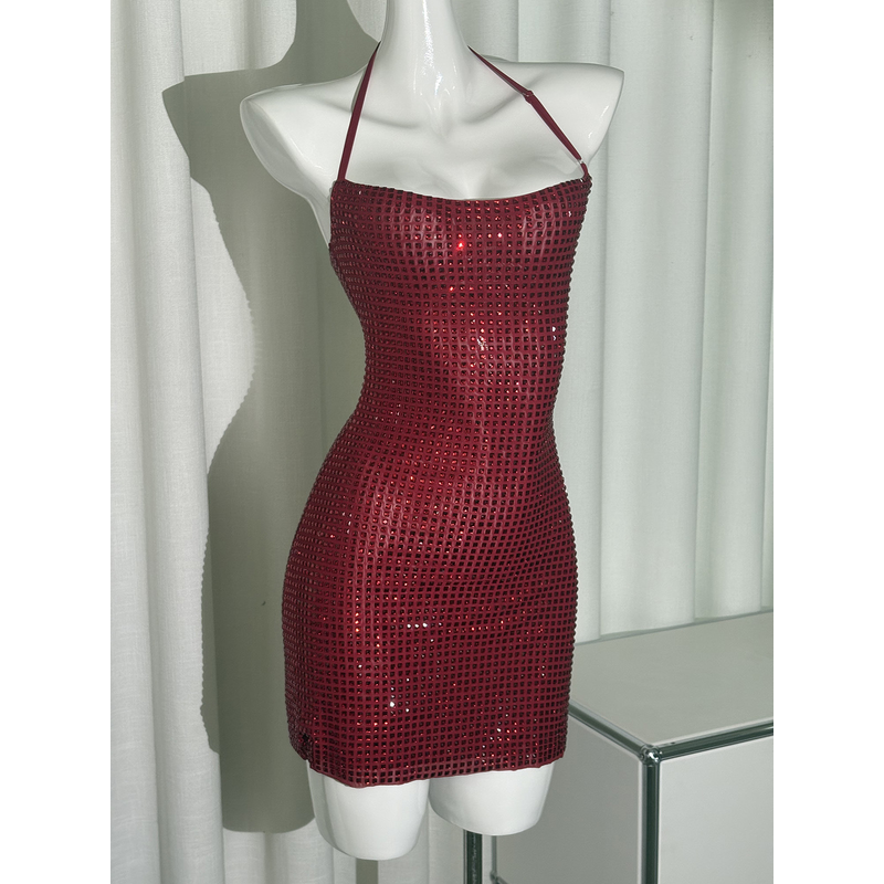 Women's Fashion Personalized Halter Light Luxury Dress Red S