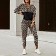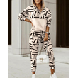 Women's Fashion Printing Long Sleeve Trousers Suit Black Pattern S