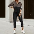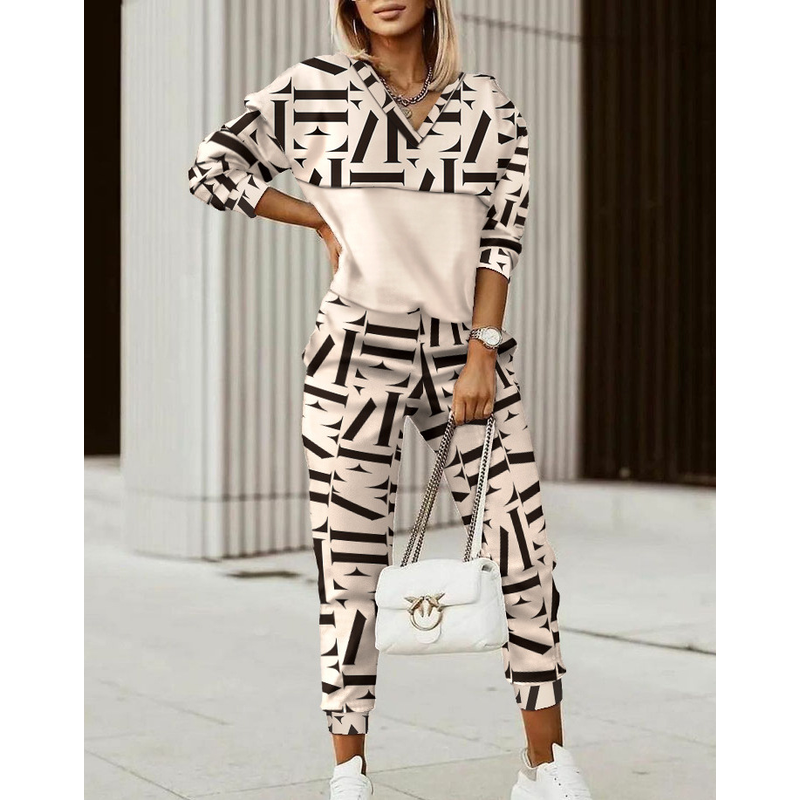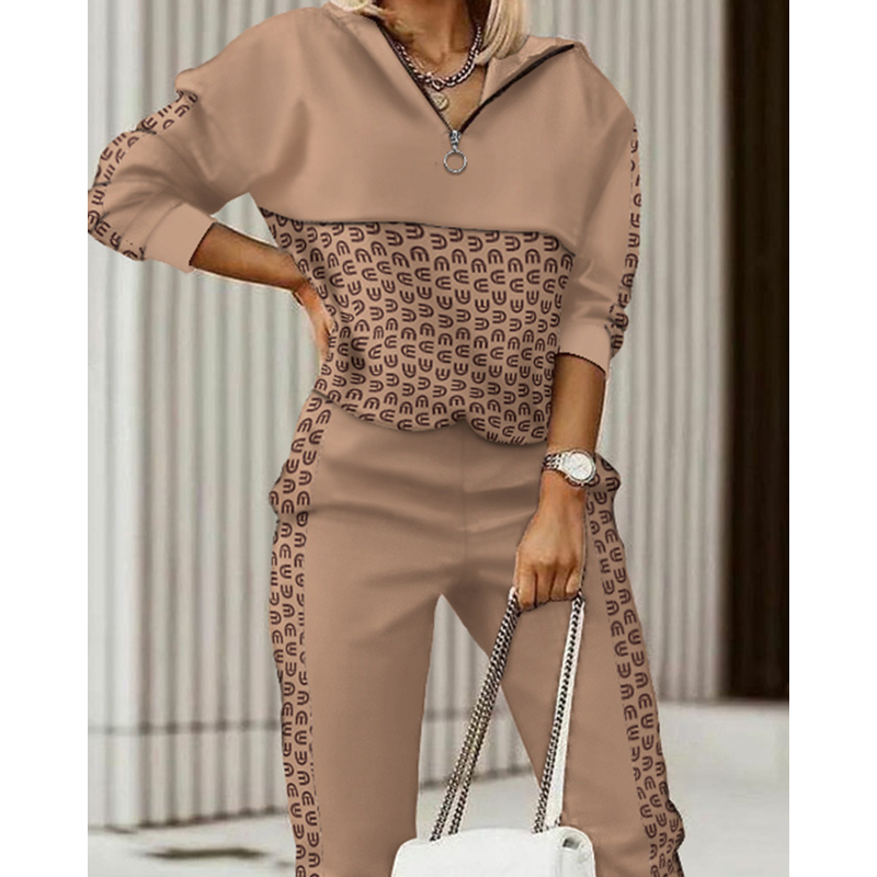 Women's Fashion Printing Long Sleeve Trousers Suit Khaki Black S