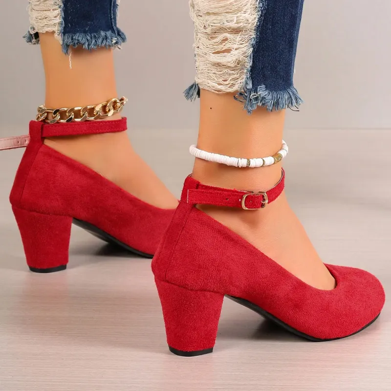 Women's Fashion Pumps Sweet Woman Thick High Heels Ankle Strap Flock Female Platform Mary Jane Women OL Shoes Ladies Footwear