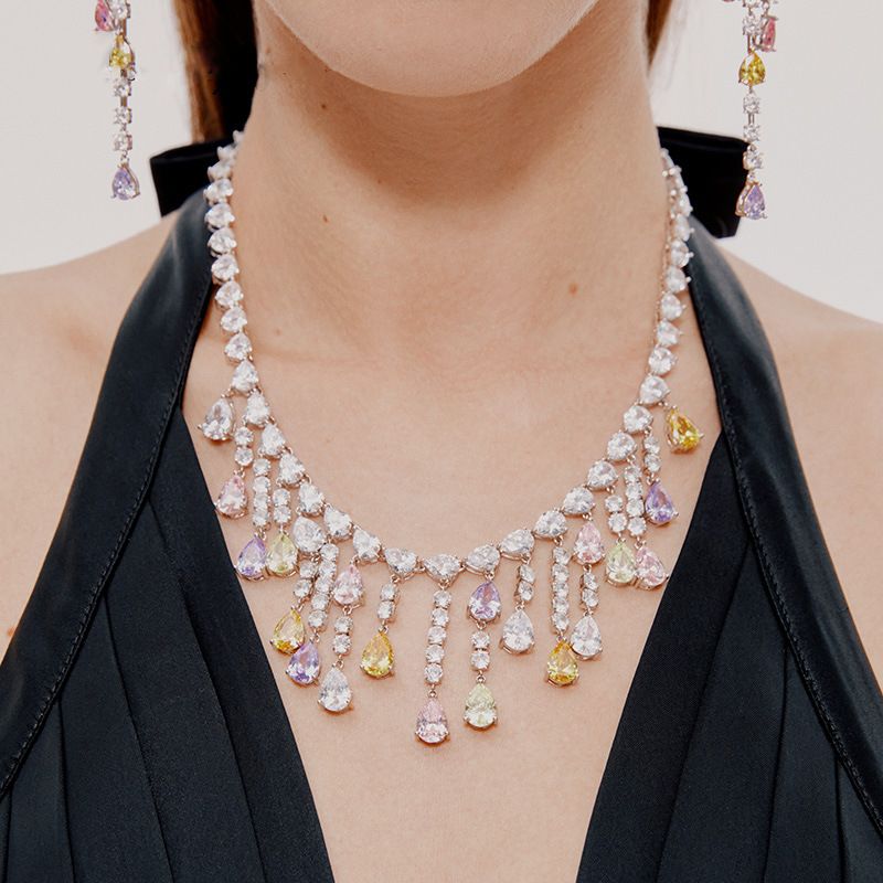 Women's Fashion Simple Water Drop Tassel Necklace Triple layered model