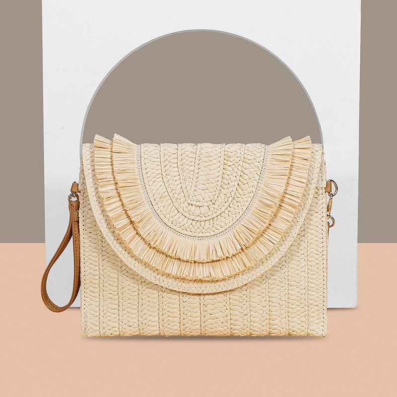 Women's Fashion Straw Bag Diagonal Span Beige tassel 28x2x20cm
