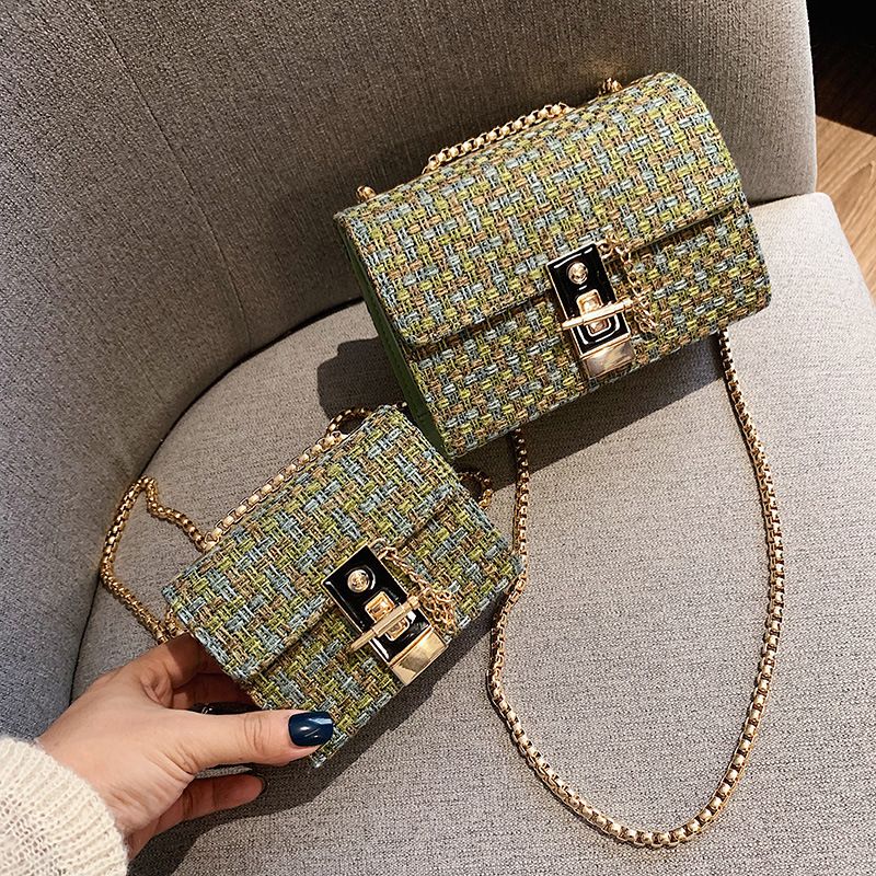 Women's Fashion Tweed Chain Shoulder Bag Black S