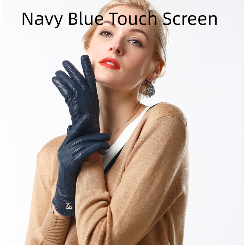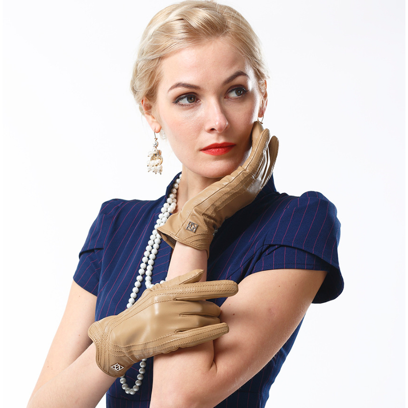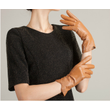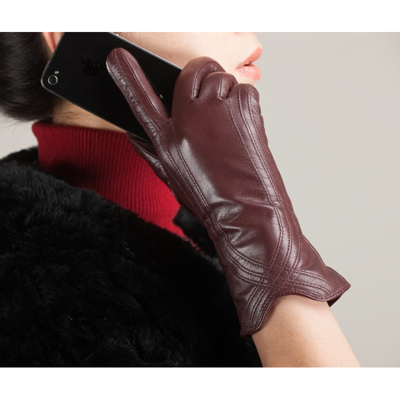 Women's Fashion Winter Warm Gloves Real Lamb Leather Handmade Curve Sheepskin Gloves Brown S