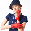 Women's Fashion Winter Warm Gloves Real Lamb Leather Handmade Curve Sheepskin Gloves Red XL
